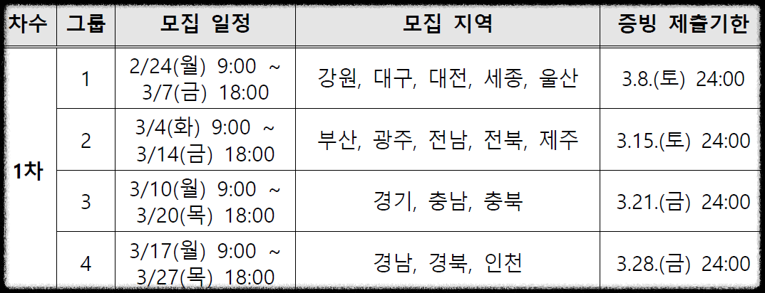 - 대상 지역: 1차에 모집이 마감되지 않은 지역